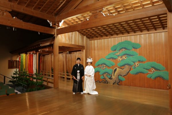 総桧造り檜皮葺入母屋破風屋根の本格的な能舞台での撮影が叶います。