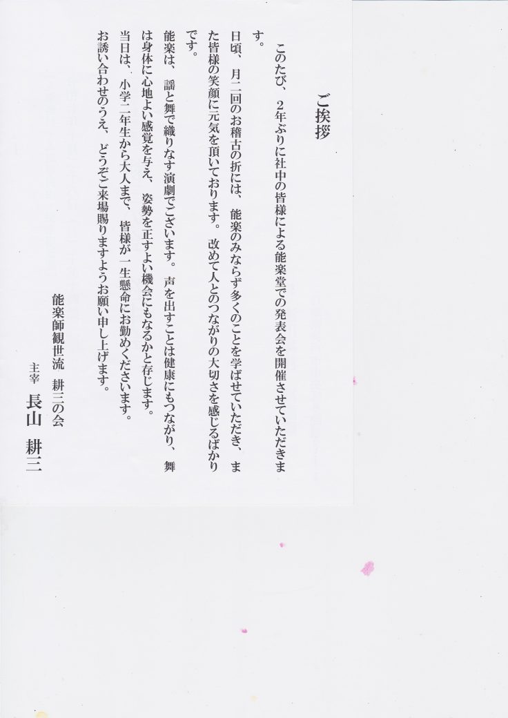 主催:能楽師観世流 耕三の会 主宰 長山耕三