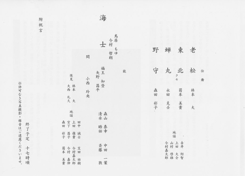 主催:大西松諷社定期能楽会・長能会