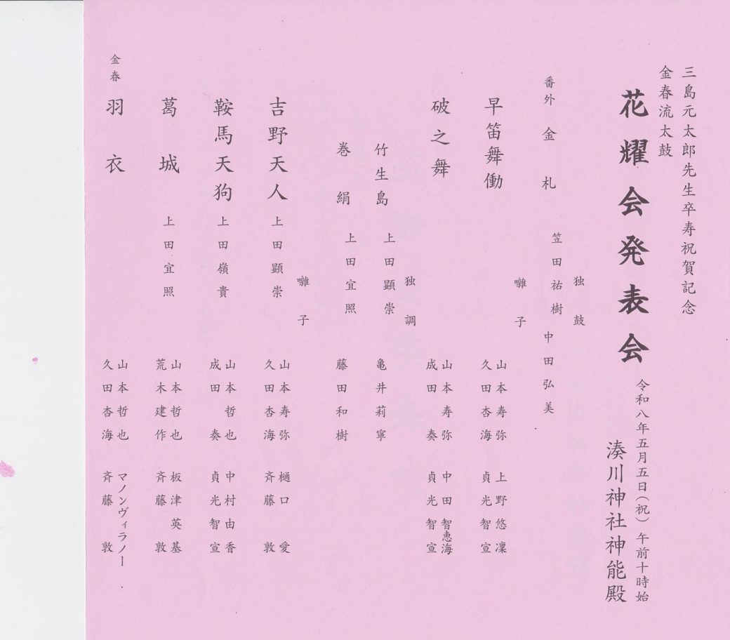 三島元太郎先生卒寿祝賀記念 金春流太鼓